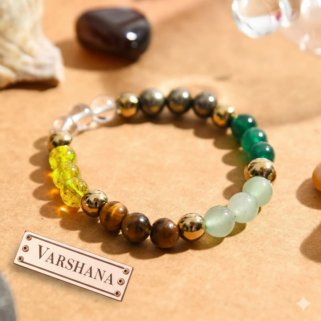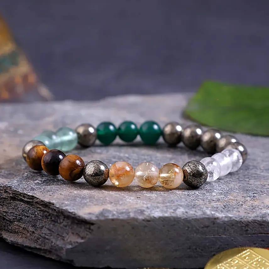 The Dhan Yog Bracelet boosts career growth, business success, and good luck using the energy of 5 natural crystals.